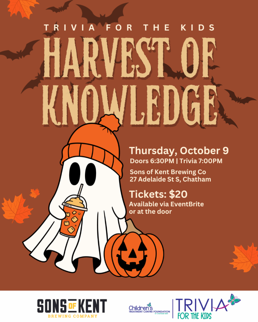 🎃 Harvest of Knowledge: Trivia for the Kids 🍁Thursday, October 9th | Sons of Kent Doors at 6:30 PM | Trivia starts at 7:00 PM Get ready to rake in the fun with a fall-tastic evning of trivia! Join us at Sons of Kent for Harvest of Knowledge, where curious minds take the stage in a playful game-night full of autumn vibes, brews, and brain-boosting fun. … Read More