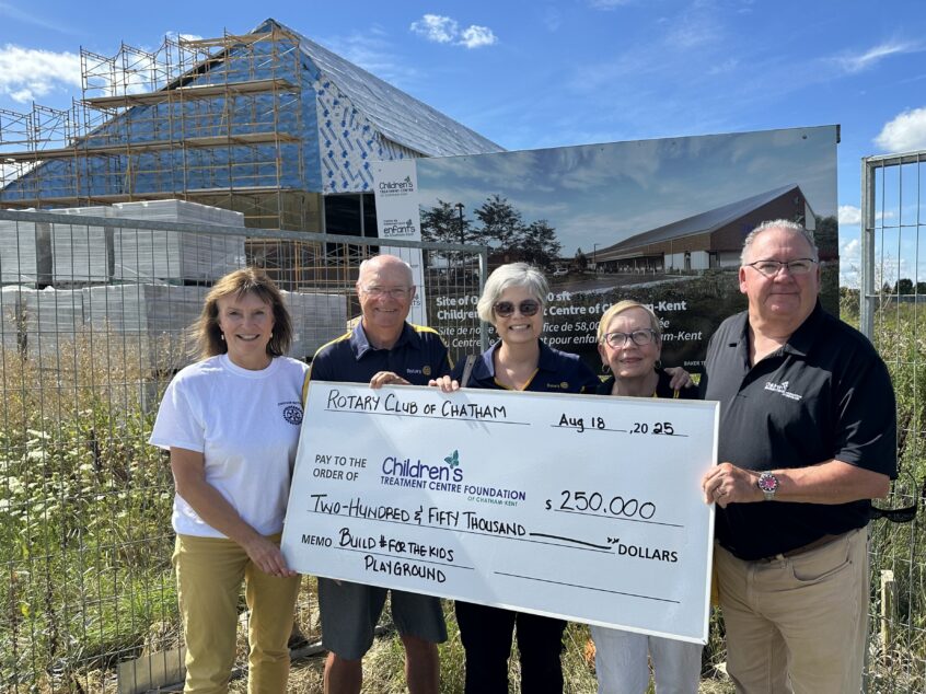 (CHATHAM, ONTARIO) – The Rotary Club of Chatham is proud to announce the completion of its pledge to the Children’s Treatment Centre of Chatham-Kent (CTC) Foundation’s Build #ForTheKids initiative, delivering the final $80,000 installment toward a total donation of $250,000 for the new playground at the future CTC location. “We couldn’t be more thrilled to deliver the final piece of … Read More
